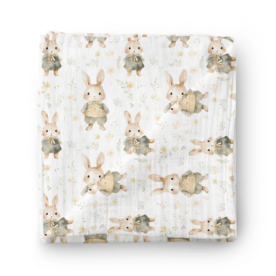Oops - Mousseline de bambou-coton - Lapins mignons aquarelle
