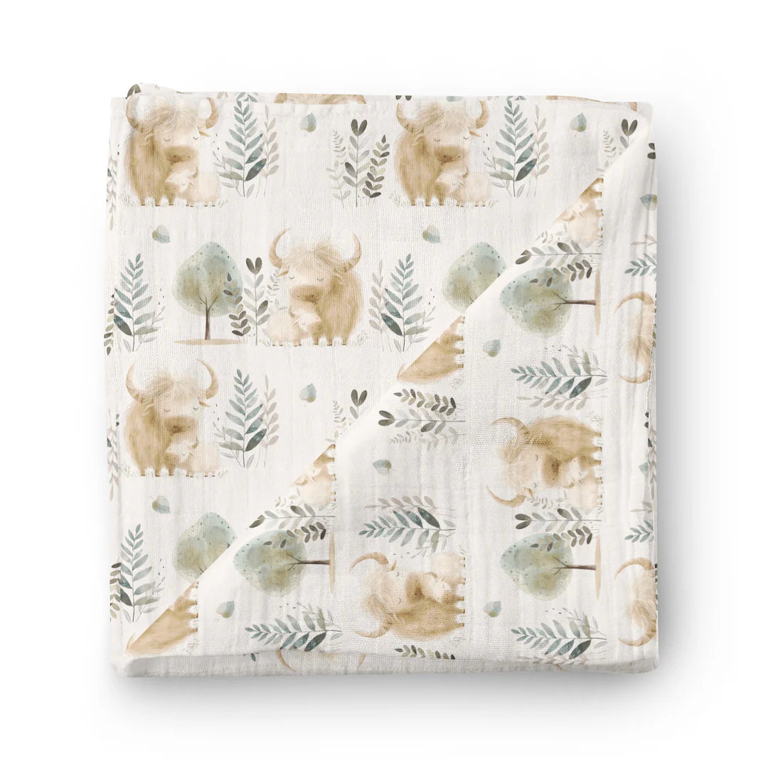 Oops - Bamboo-cotton muslin - Mom and baby highland cows