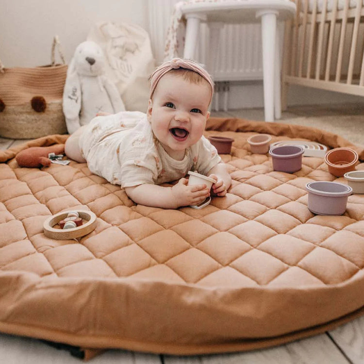 A unique padded baby play mat that is a storage toy bag, diaper bag at the same time. 47.24" in diameter and made from GOTS organic cotton to give the baby maximum fun and comfort. This diaper bag and diaper bag is so practical and functional for your daily use.