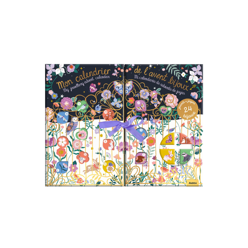 Un magnifique calendrier de l’avent bijoux 100 % bijoux. Il se présente sous la forme de 24 petites boites illustrées à ouvrir chaque jour.Le calendrier propose du matériel de qualité : de nombreux fils et rubans, des perles polymères, de jolis charms, des perles lettres…