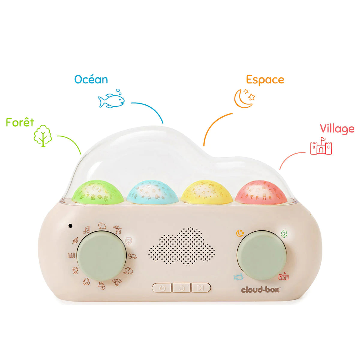 Cloud.b is pleased to present the CloudBox™, the only storyteller for children aged 0 to 8 years old that combines sound and light projections!