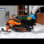 The driver is equipped for the race with protective equipment; helmet and gloves. The full-suspension chassis features elastomer chains in combination with a front-steer swing axle to move the snowmobile safely over rough terrain. The snowmobile seat is designed for two riders. We recommend additional items, such as the men's skier (item no. 60040) or the female skier (item no. 60420) from our extensive winter range. snowmobile