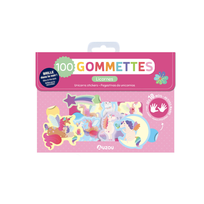 Une pochette de gommettes repositionnables sur le thème féérique des licornes ! Et bonus : elles brillent dans le noir ! Les gommettes sont faciles à détacher grâce à la languette dont elles disposent.