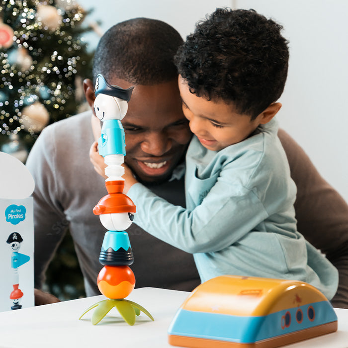 Ahoy little sailors! Go on a treasure hunt or jump on the deck of the boat! The metal case can be used as a game support but also for transport and storage. Little ones will discover the magic of magnetism with this transportable set in its travel case. All parts are compatible with other SmartMax references.