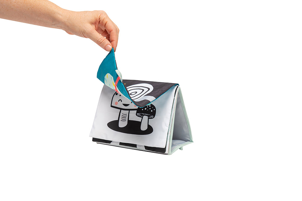 - The book stands on its own to encourage tummy time play.