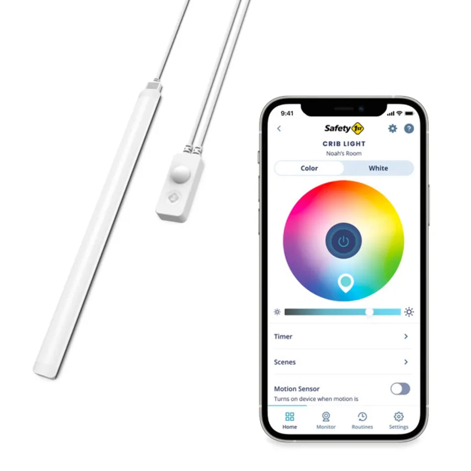 Bring a touch of sophistication to your crib with our Safety 1st Smart Bassinet Light. Thanks to its motion detector, it emits a soft and constant light under the crib and turns on slightly brighter when you enter the room. Easily customize colors, brightness and detection settings from your smartphone. Bonus: use the color palette in the app to create unique lighting moods.