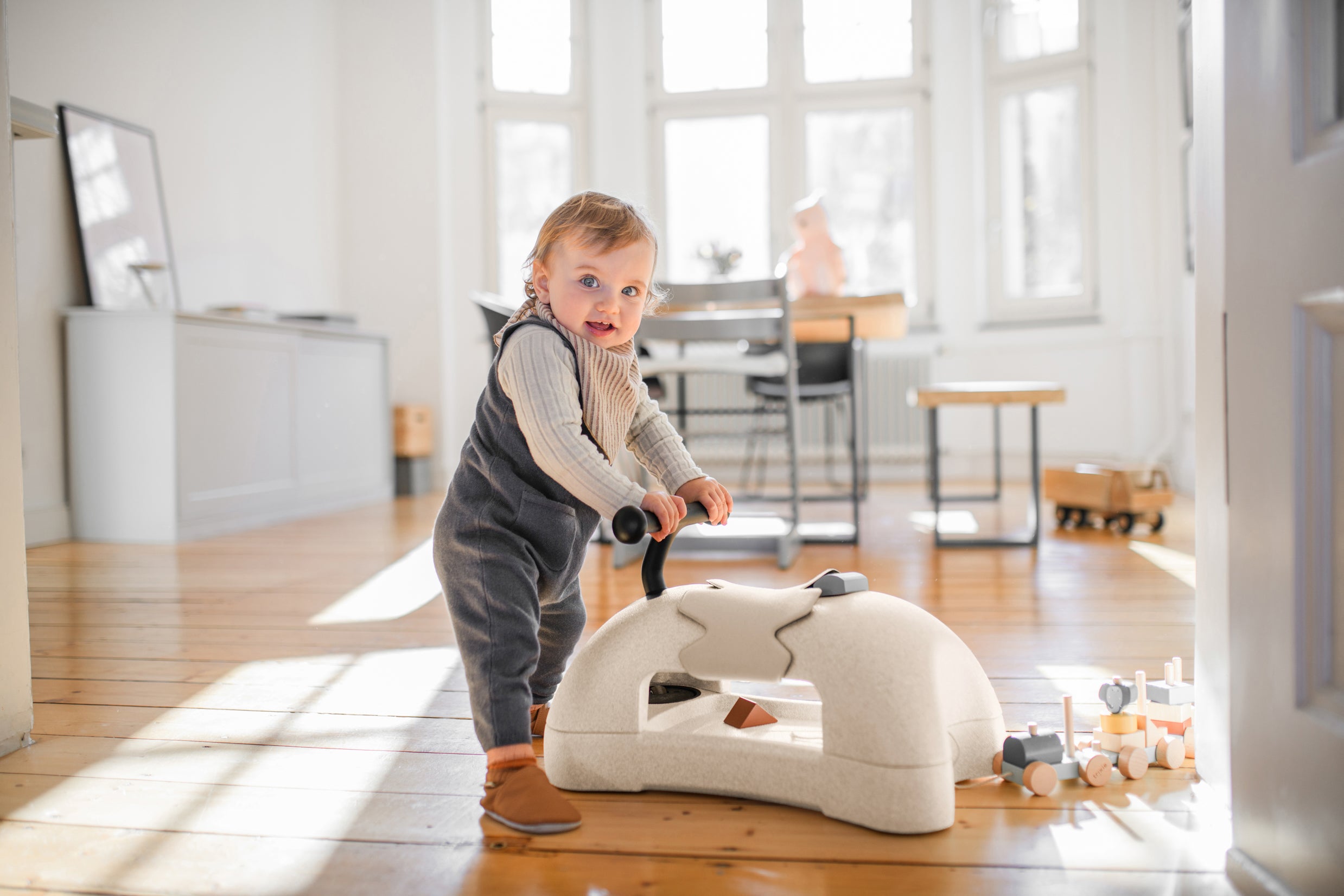 Turn the board to reveal 4 casters! Your My First is now a carrier for walking around the house. The transition is made in seconds and without the help of any tools. The space under the seat can be used as storage, make sure they grab their favorite toys before they head off on their adventure aboard My First!