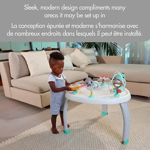 Transform your baby's routine into an adventure with our 5-in-1 activity center. Use it in a prone position, as a stationary activity center, as a balance board, as an activity table for toddlers or even as a desk and chair for your child. Practical and stylish, with its 6 interactive toys and a platform that transforms into a stool, offer your child a versatile play space to have fun and develop. Plus, monthly milestone cards add a touch of joy to each month of growth. Order now and make every day an adventure for your baby!