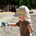 La protection UV de notre bonnet bébé en coton provient du tissage du tissu et de la construction du chapeau. Conçu avec un bord souple et un rabat de cou parfaitement dimensionnés pour protéger confortablement le visage, les oreilles et le cou de votre enfant du soleil. Fabriqué en coton 100 % respirant, classé UPF50+ et sans danger pour la peau délicate des bébés, sans produits chimiques, colorants ou solutions nocifs ajoutés.