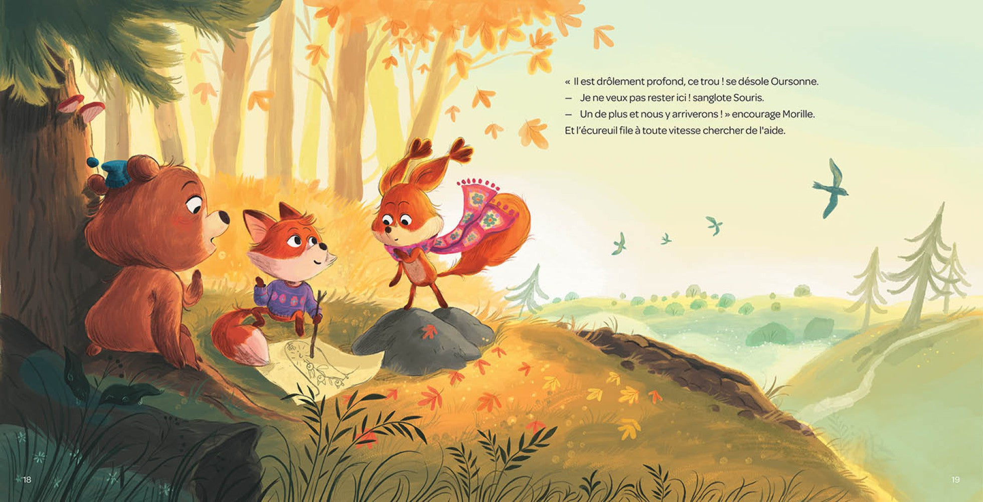 Morel the squirrel never takes off her scarf. But one day, her friend Mouse falls into a hole... Helped by the other animals of the forest, Morel will try to get her out of there. Will she have to part with her woolen lucky charm to save her friend?