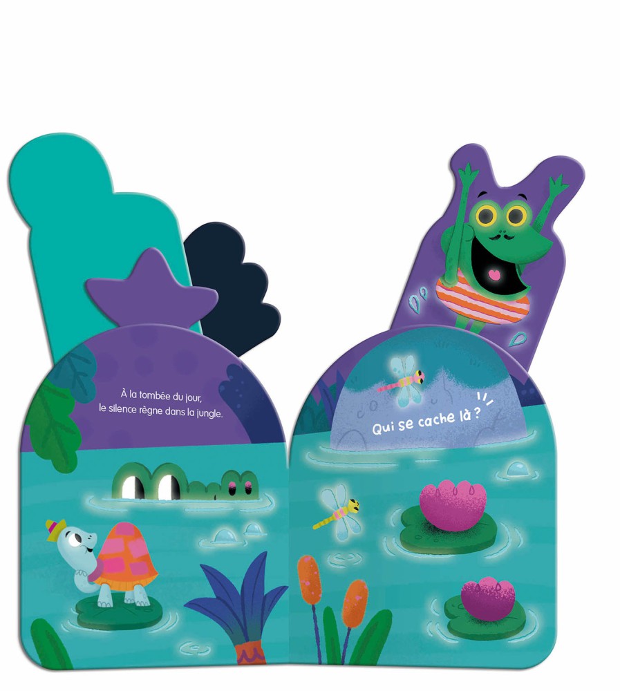 The animals are playing hide-and-seek in the night... Pull on the elements that stick out and listen to the sounds to discover who is hiding on each page. New: phosphorescent varnish on each page to make the book glow in the dark!