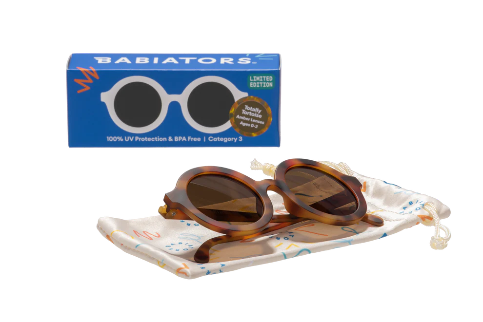 Our new round sunglasses add a fun, retro touch to any outdoor adventure! Babiators' award-winning children's sunglasses protect against 100% UV rays (and annoying style) and are virtually indestructible. Totally tortoise comes in two sizes that are suitable for babies, toddlers and children aged 3 months to 5 years.