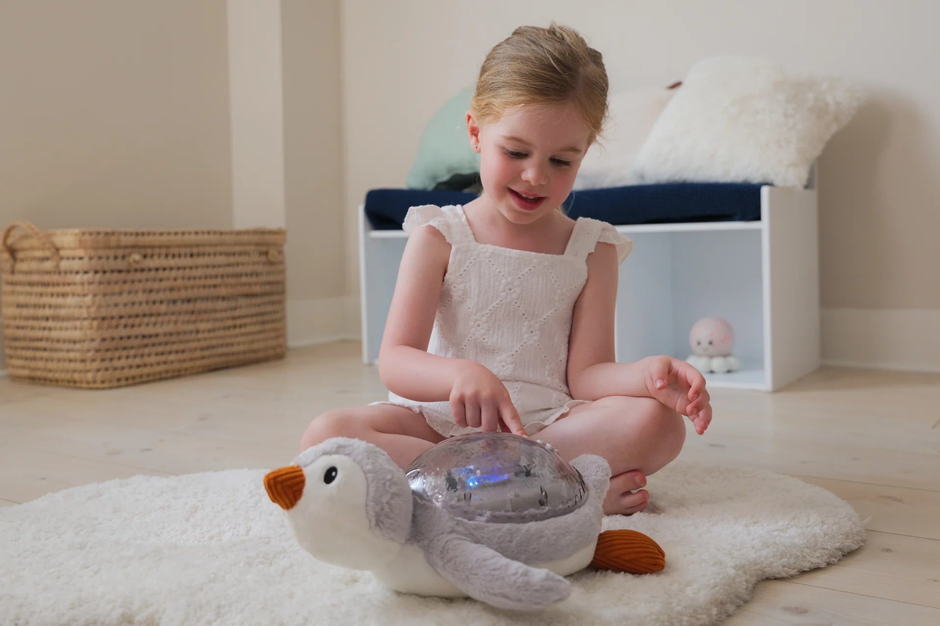 Tranquil Penguin™ features 4 sounds (2 soothing melodies and 2 white noises). This penguin night light is equipped with a smart cry sensor to help lull little ones to sleep even better while transforming the children's room into an oasis of peace.
