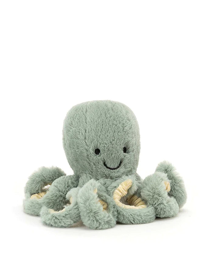 Dive into the depths for an adventure with this baby Odyssey octopus! Incredibly soft in mint green, he has eight super wavy elastic arms, Odyssey loves to cuddle. A splendid friend for marine animal lovers!