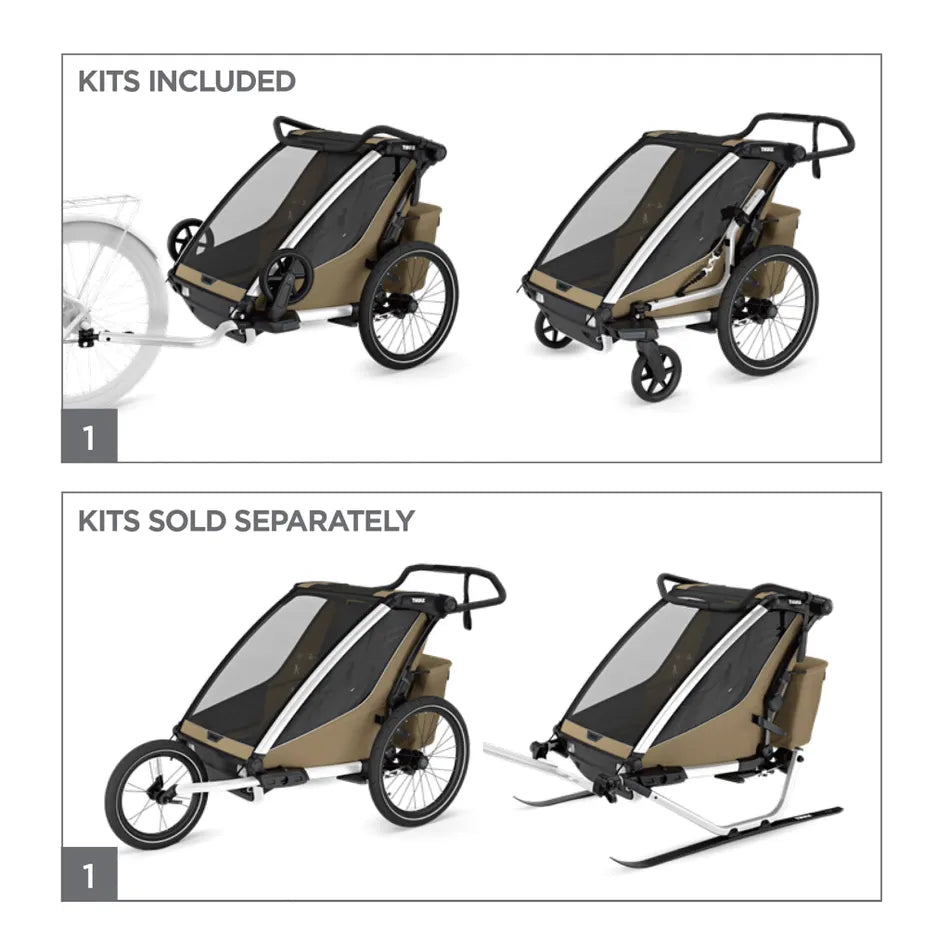 Thule Chariot Cross 2 can easily be transformed into a great workout companion with a jogging or ski kit (sold separately). Transitions between activities are smoother and more comfortable than ever for parents and children.