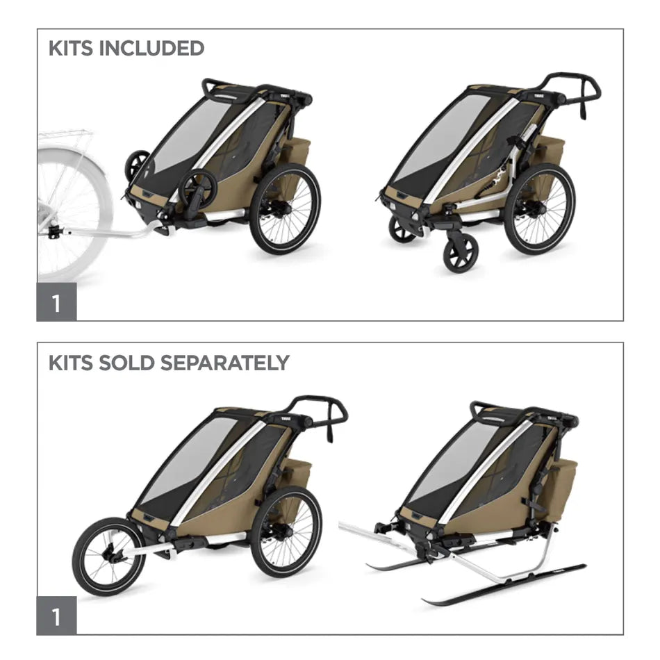 Thule Chariot Cross 2 can easily be transformed into a great workout companion with a jogging or ski kit (sold separately). Transitions between activities are smoother and more comfortable than ever for parents and children.