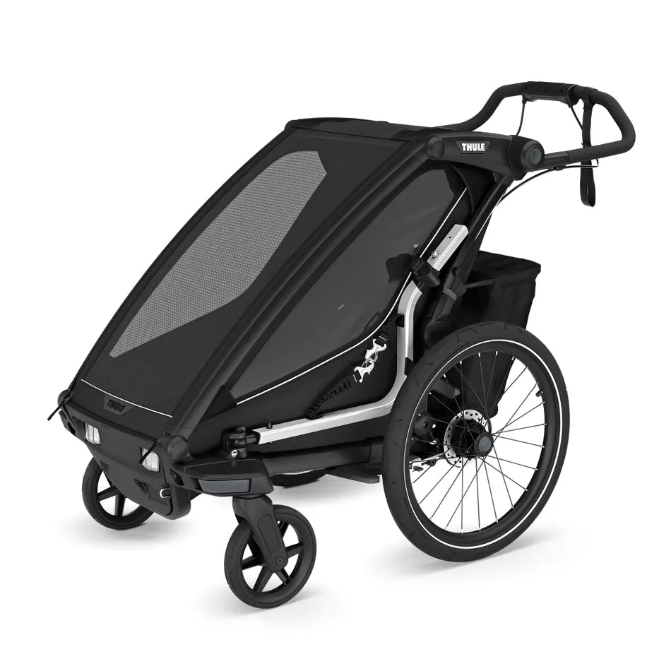 Designed to make training safe, easy and fun, Thule Chariot Sport 2 lets you experience easy transitions between cycling, walking and running. A quick rotation of the wheels 180 degrees with one hand transforms the bike trailer into a stroller in seconds. Additionally, the redesigned hitch arm features a one-click secure mount, simplifying attachment and adding a layer of protection with an integrated lock. With flexible seating options for one or two children, Thule Chariot Sport meets the unique needs of each family.
