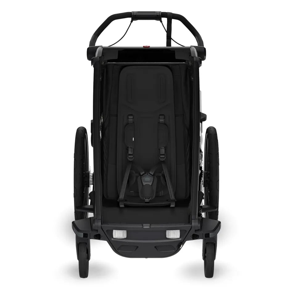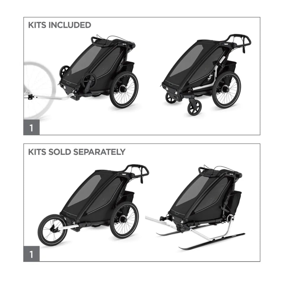 Whether cycling, walking, jogging or even skiing, Thule Chariot Sport 2 is your all-season, all-terrain fitness companion. With newly refined jogging and ski kits (purchased separately) , transitions between workout activities are smoother and more comfortable than ever for parents and kids.