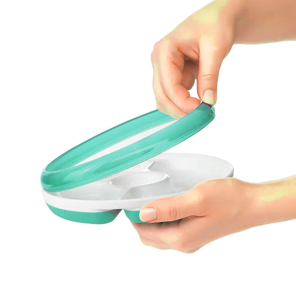 Oxo Tot - Compartmented plate with suction cup - Turquoise
