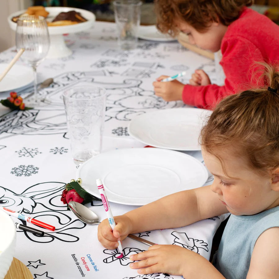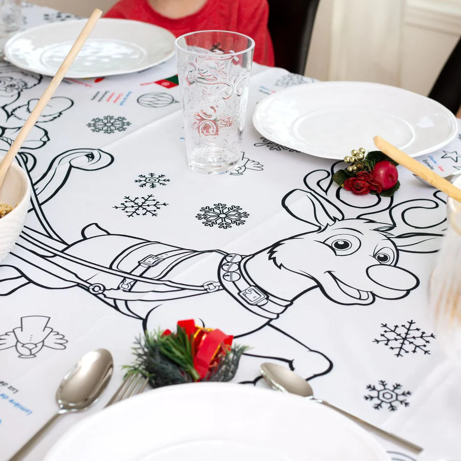 These tablecloths are designed to be washed and reused, making them a sustainable choice for your home. Simply machine or hand wash them and they will be ready to use again. Christmas tablecloths are perfect for family dinners, holiday parties or even as a fun activity for children. They also make a great gift, especially for those who love decorating for the holidays. Color all the elements linked to the world of Christmas: gifts, Santa Claus, reindeer, etc. A precious family moment!