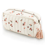Our organic cotton quilted wash bag comes in our unique prints with a stylish tassel. A beautifully designed handy pouch for parent or baby to store your toiletries, makeup, and more or diapers and creams. It also has a practical elastic pocket inside. The product that is for both parent and baby and has an endless number of uses.