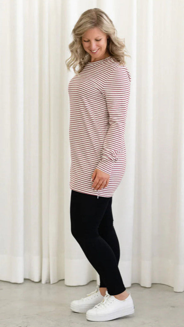 La deuxième modèle n'est pas enceinte, mesure 5 pieds 3 et porte la taille S/M.