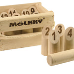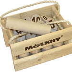 - Mölkky is made of uncoated Baltic birch wood. They are sanded so that each game piece is smooth.