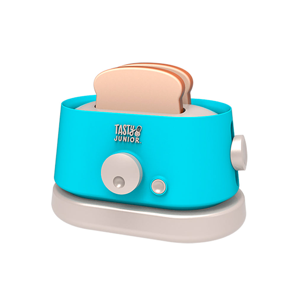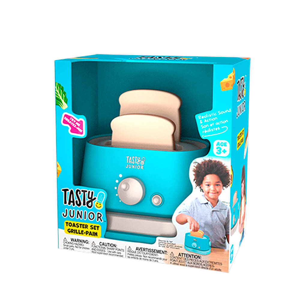 Check out the Tasty Jr. toy toaster for hours of culinary role play! With its realistic design and authentic sounds, this trendy blue toaster will add a touch of fun to a child's kitchen. The included toast adds a touch of realism, while the opportunity to prepare an imaginary breakfast allows children to develop their creativity and social skills. Be part of the action with the Tasty Jr. toy toaster that will encourage kids to explore new recipes and have fun while learning