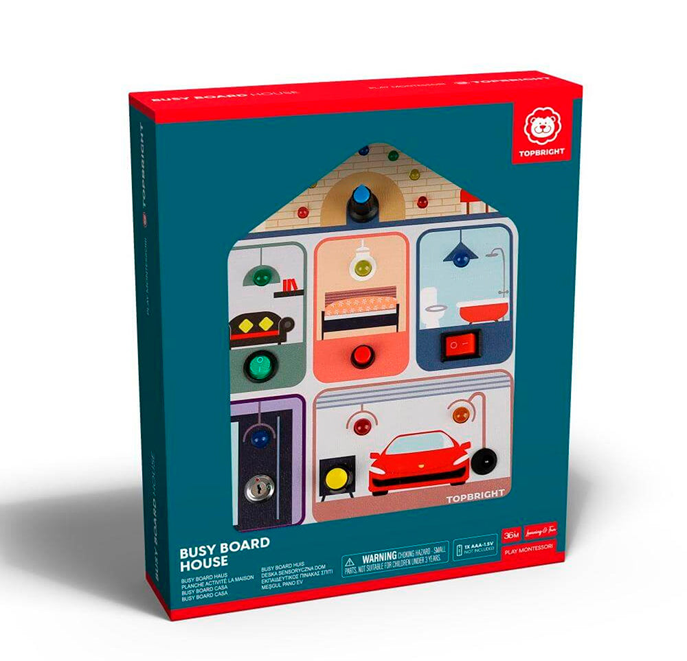 La planche d'activités La maison est un jouet d'éveil conçu pour les tout-petits. Il s'agit d'une planche d'activités en forme de maison, idéale pour le développement des compétences motrices et sensorielles des enfants à partir de 36 mois. La planche d'activités est un excellent outil pour encourager la curiosité et la résolution de problèmes de manière ludique et sécurisée. Ce jouet est équipé de plusieurs éléments interactifs qui imitent des objets du quotidien.