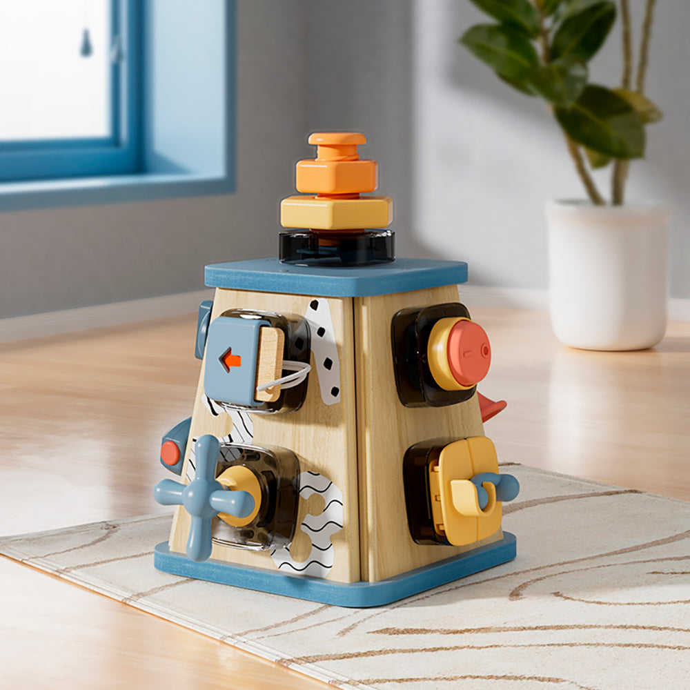 Une tour d’activités pour visser, tourner, tirer et explorer! Stimule la motricité fine, la coordination œil-main et la curiosité avec loquet, robinet, engrenages et plus encore. Pour les petits mains actives.