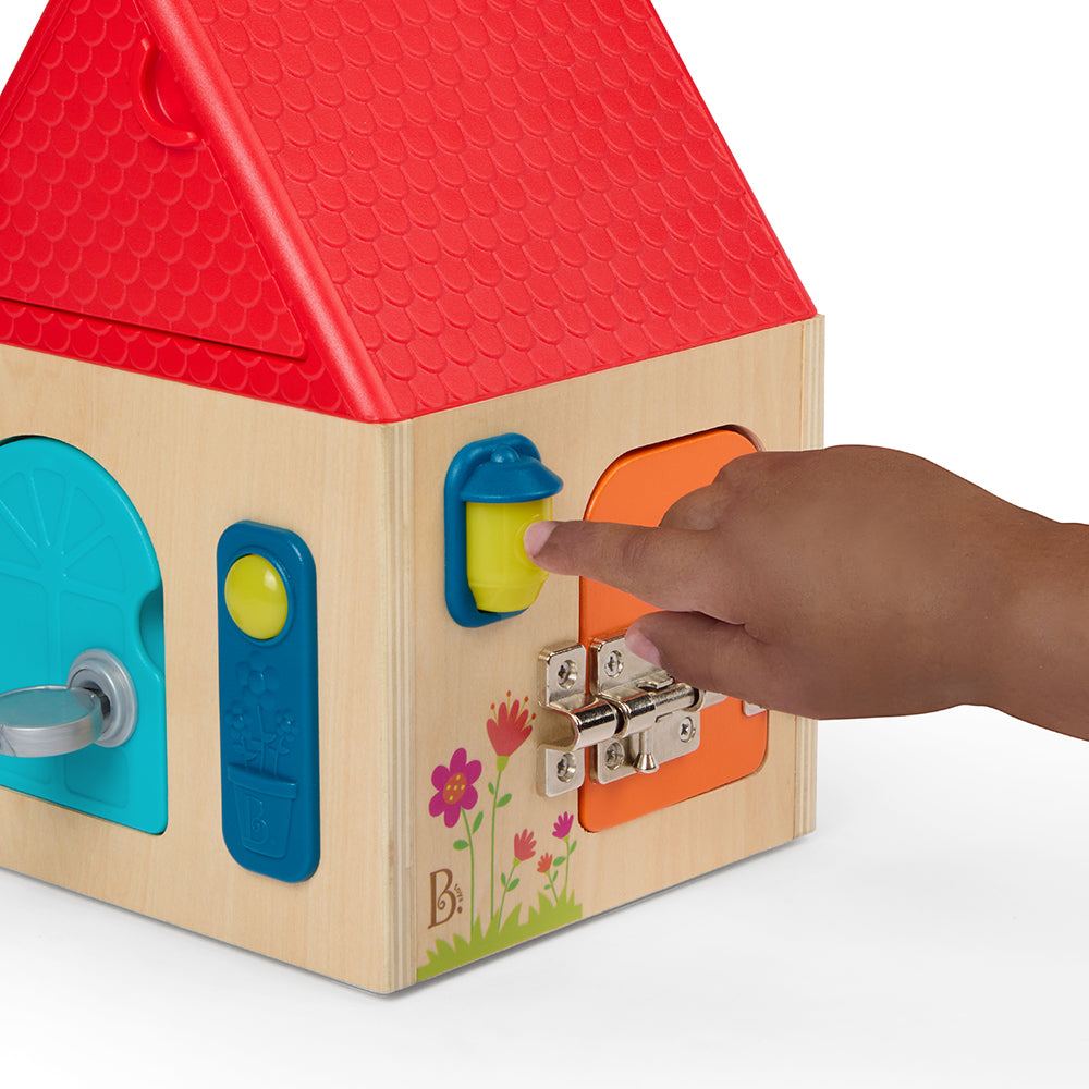 - Multiples activités : loquets, clés, sonnette, volets, fenêtres et figurines à découvrir.