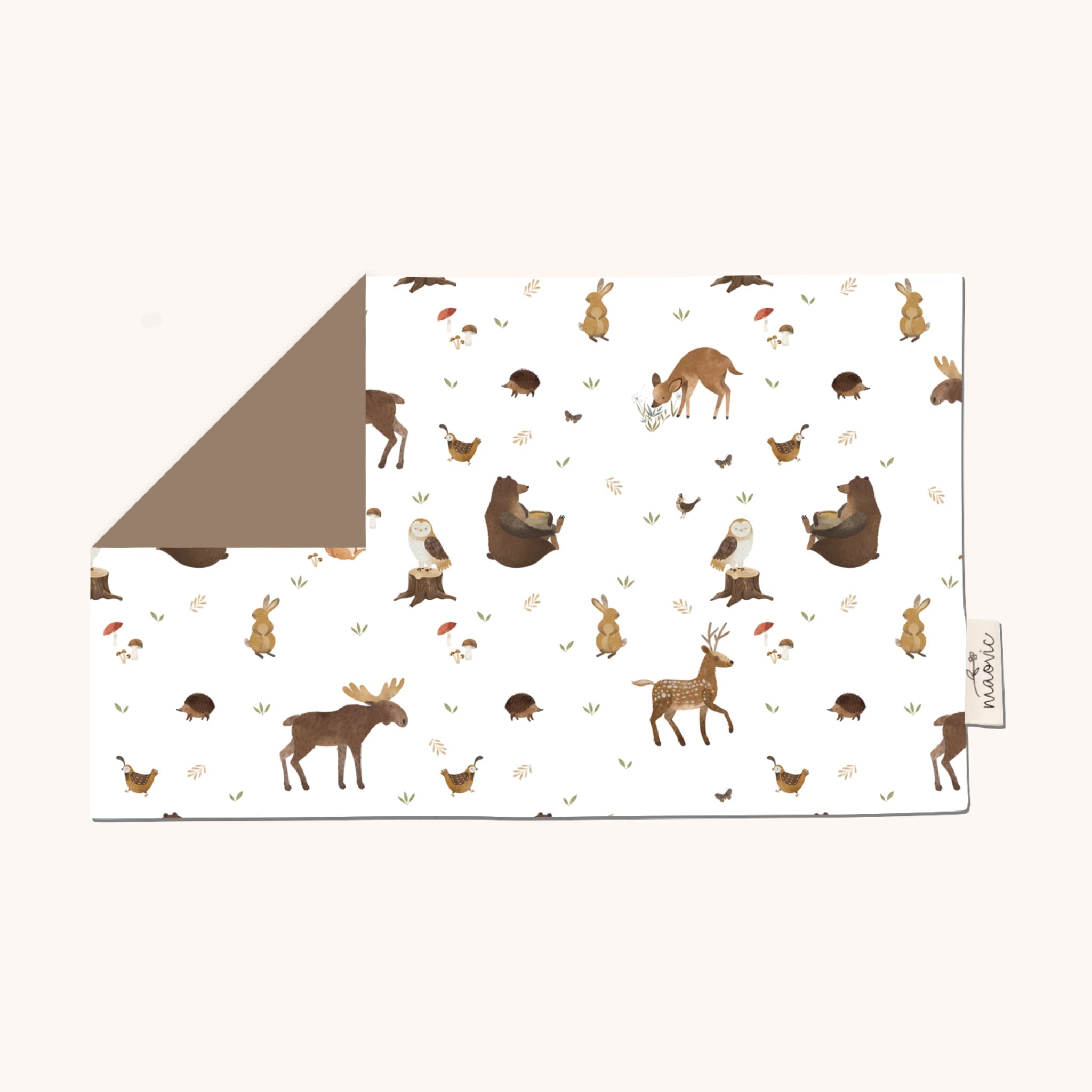 - Un côté à motif 100% coton et un côté uni d’une couleur agencée en poly coton;