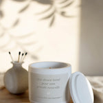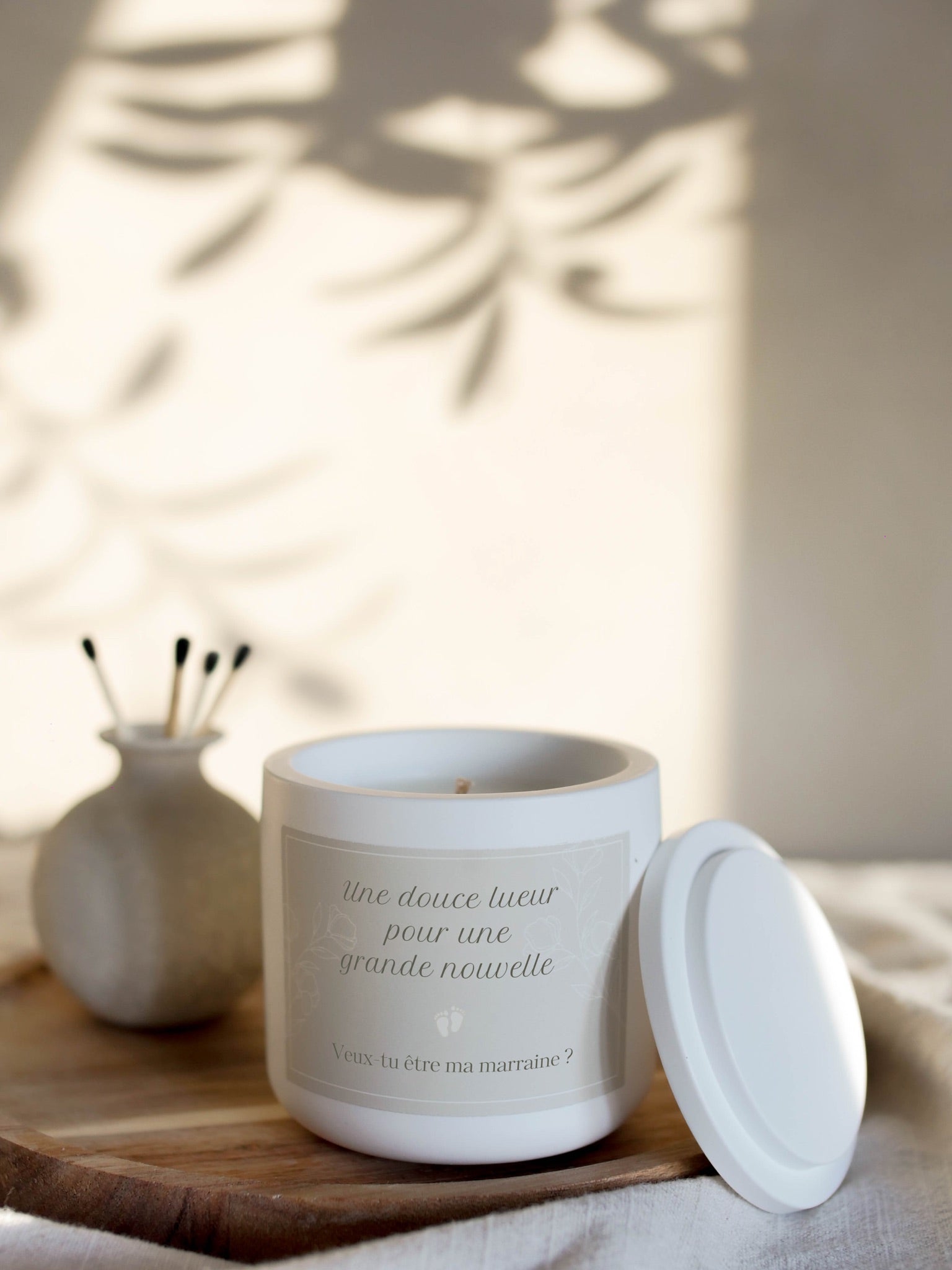 Chaque bougie entièrement fabriquée à la main (oui, oui même les pots) aux fragrances de thé blanc est accompagnée d'un message spécial qui fera fondre les cœurs de vos proches. Que ce soit pour les futurs grands-parents ou les parrains/marraines, cette bougie est bien plus qu’un objet : c’est une émotion, un souvenir précieux qui brillera longtemps après l’annonce.