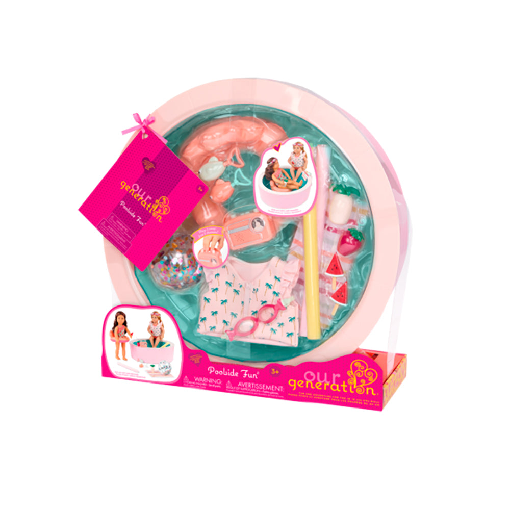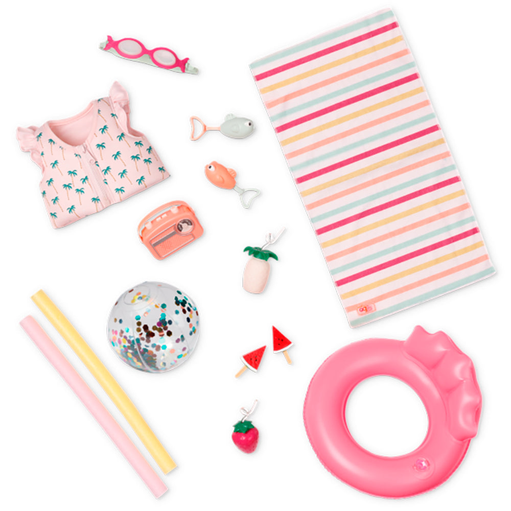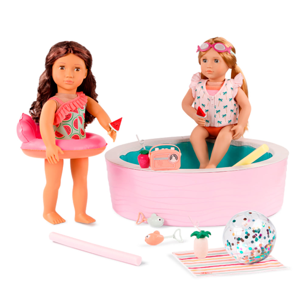 Faites des vagues et vivez des aventures ensoleillées avec l'ensemble Our Generation Poolside Fun pour poupées de 18 pouces!